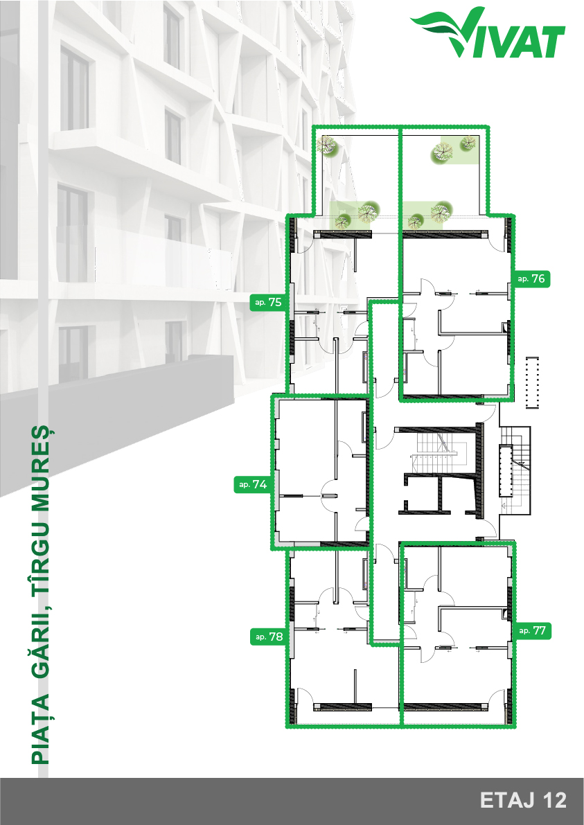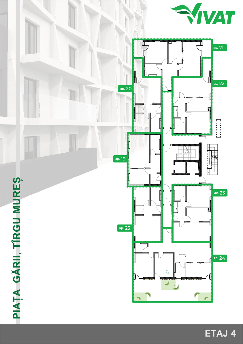 spații verzi și alei de promenadă open space în jurul imobilului